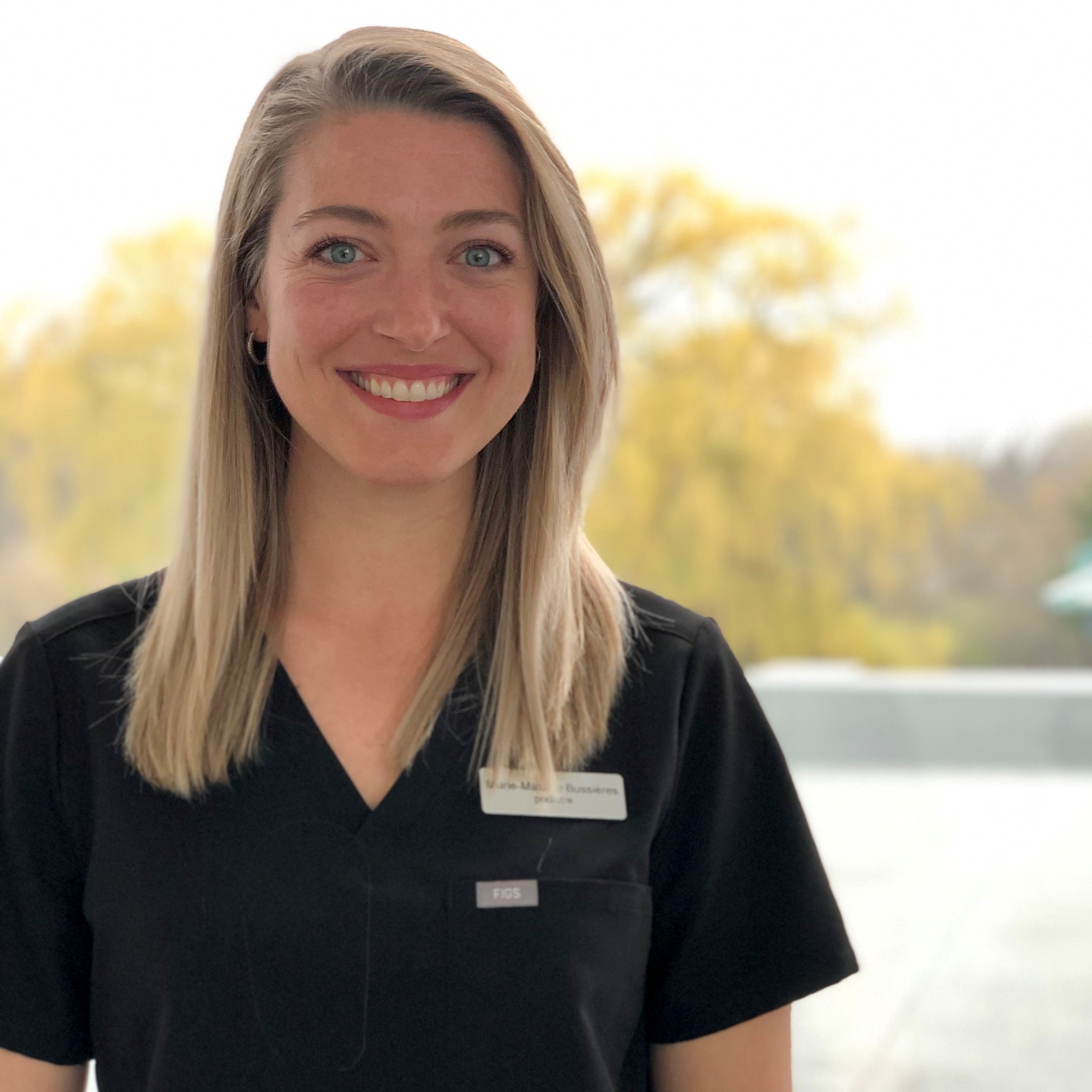 Dre Marie-Maxime Bussières, podiatre, s'intéresse particulièrement à l'évaluation de la démarche chez les enfants et les adultes. Passionnée de plein air et de sports extérieurs, elle continue de parfaire ses connaissances en échographie diagnostique au niveau du pied et de la cheville, en injections échoguidées et en bandages neuro-proprioceptifs.